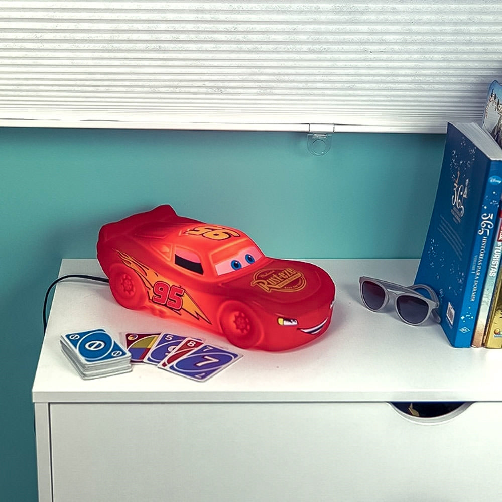 É fã de Relâmpago McQueen?rnrnO personagem mais veloz dos filmes Carros da Disney virou uma luminária super estilosa para iluminar tanto o quarto infantil, quanto aquele cantinho especial.rnrnCom lâmpada fluorescente esta Luminária Lightning McQueen liga e desliga com interruptor.