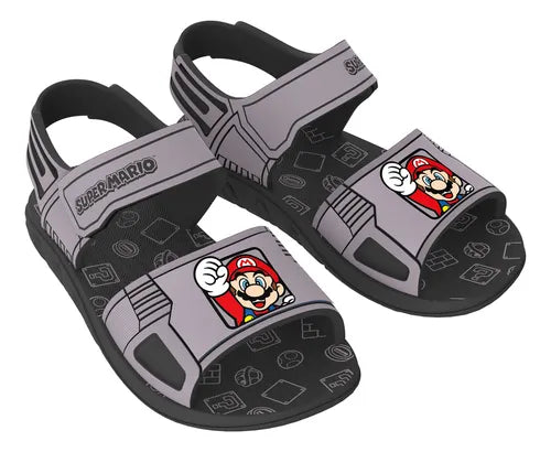 Sandália Infantil Menino Super Mário Grendene Grafite /Azul